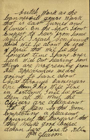 Letter, William Gleason to Gleason family