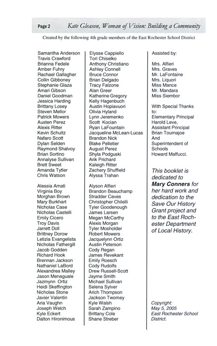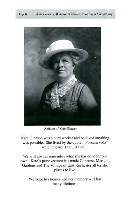 Learn more about Kate Gleason with this booklet created by 4th graders of the East Rochester School District and the East Rochester Department of Local History.