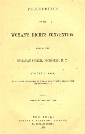 Excerpts from the report of the second women’s rights convention, held in Rochester two weeks after the first meeting in Seneca Falls. From the collection of the Rochester Public Library Local History Division.